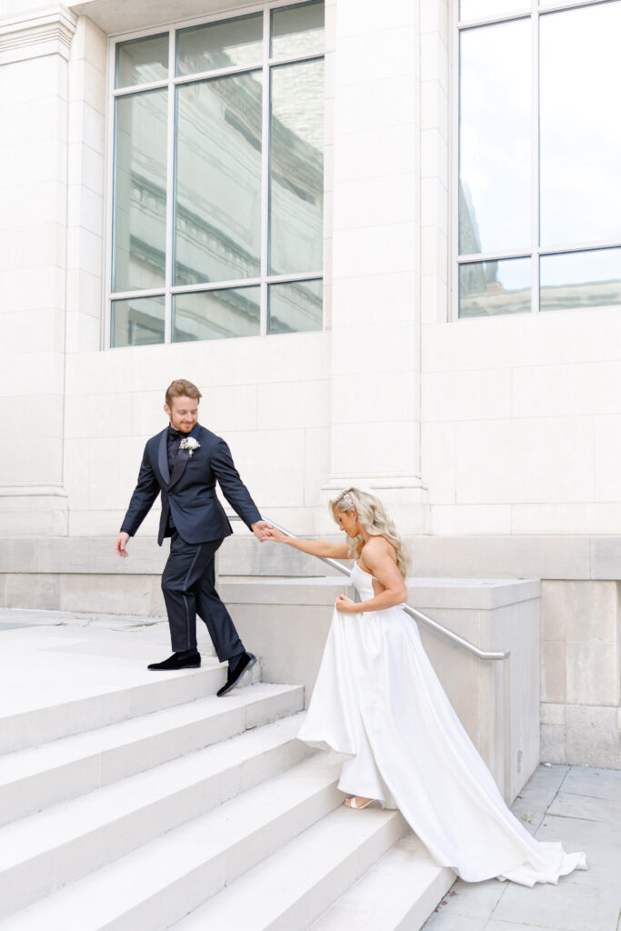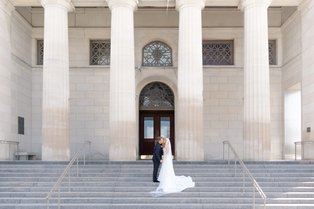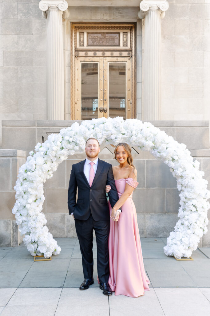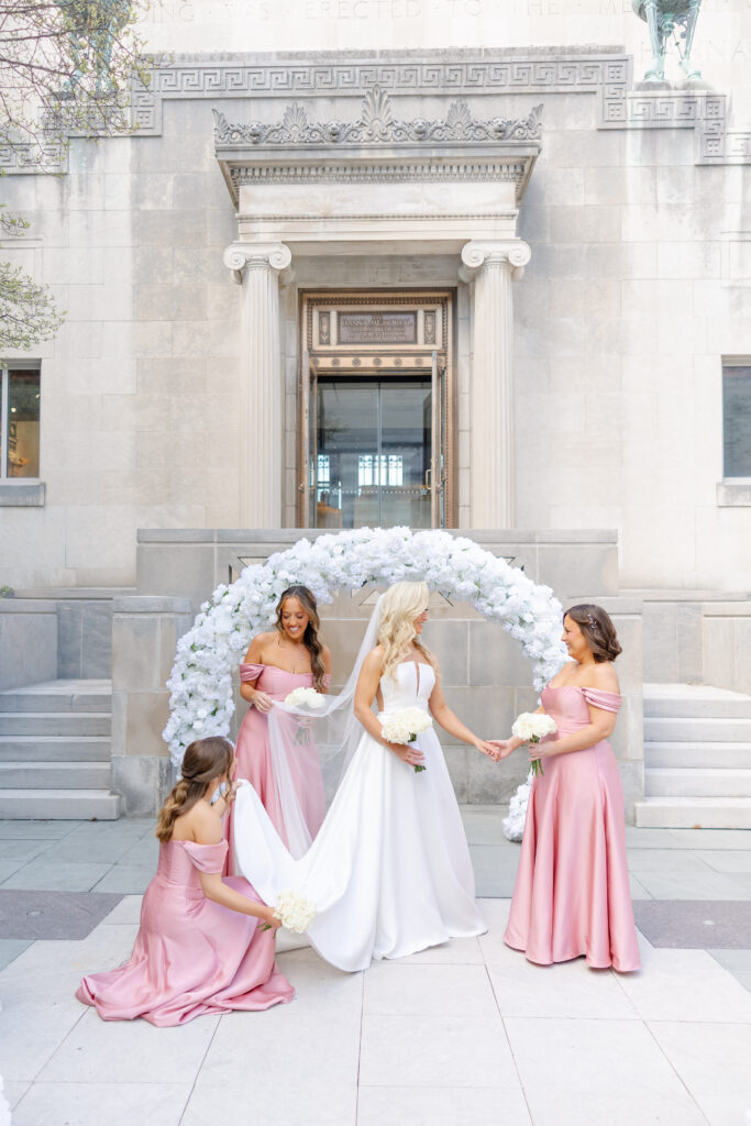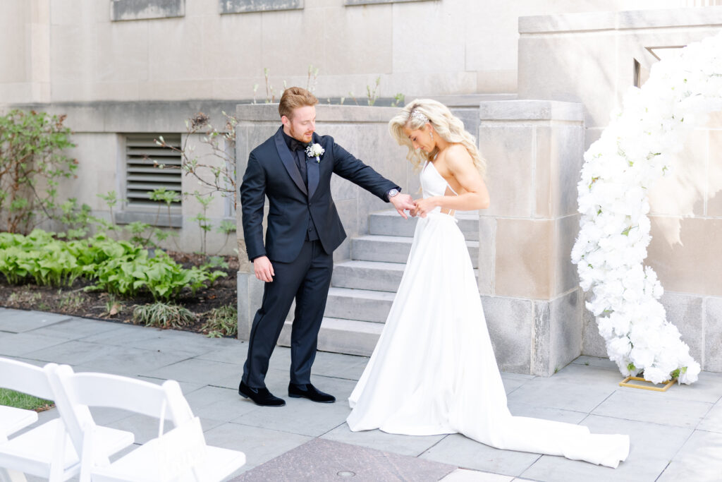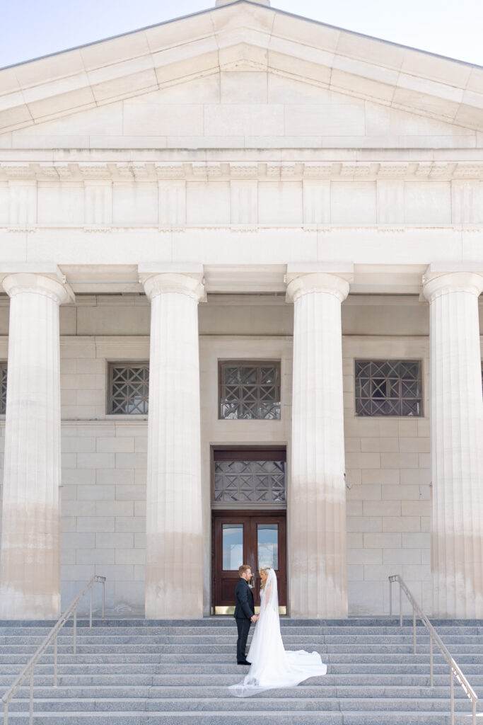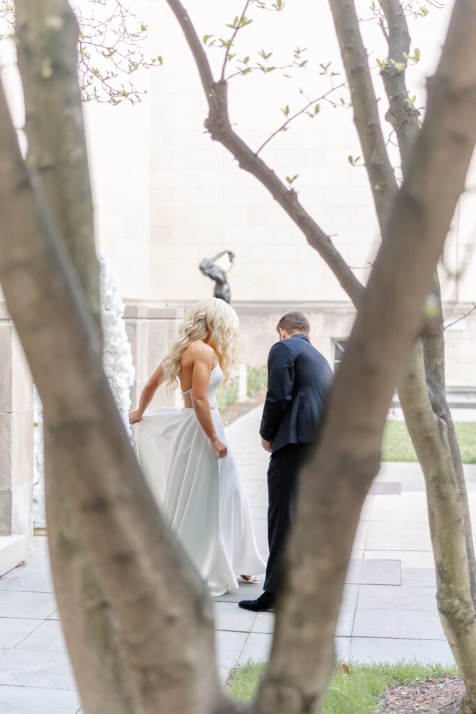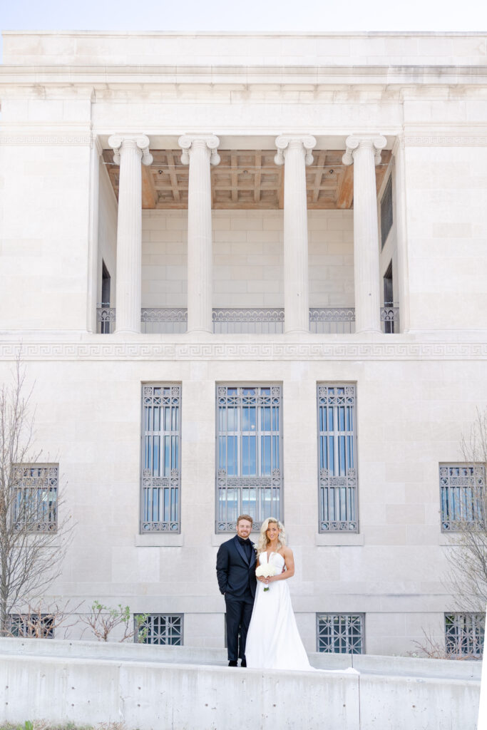 Beyond the courtyard, the Cincinnati Art Museum offers so many striking backdrops for portraits. The front steps and grand exterior create editorial, timeless images, while the greenery and artful stonework add a sense of romance. Everywhere you turn, the architecture and light create backdrops that make your love story feel like art in itself- all within steps of the ceremony and reception spaces.