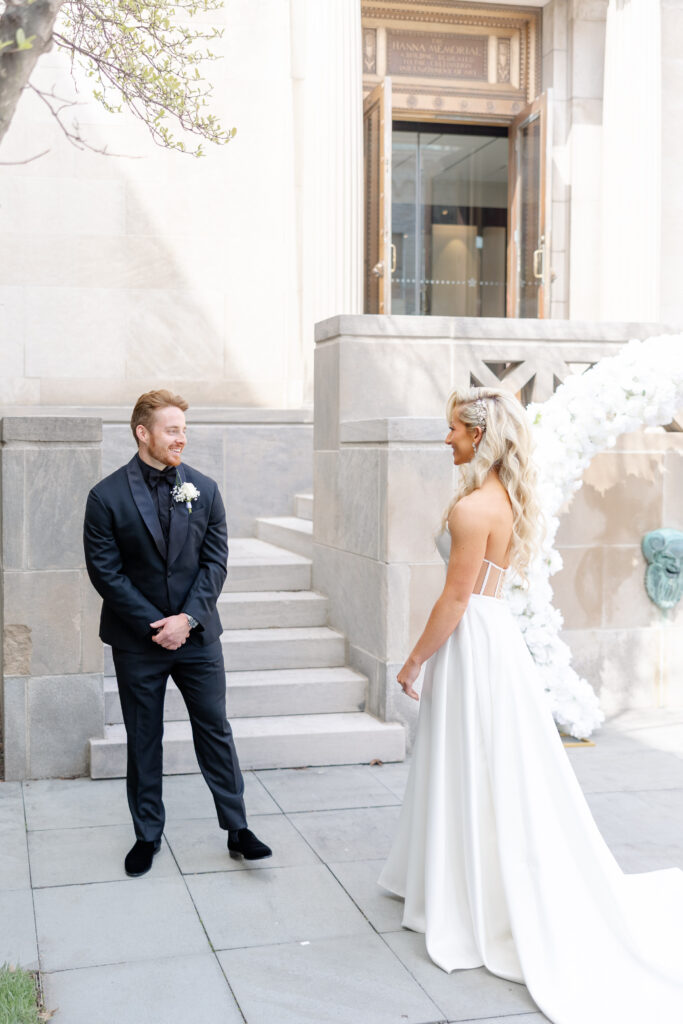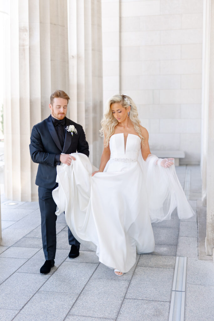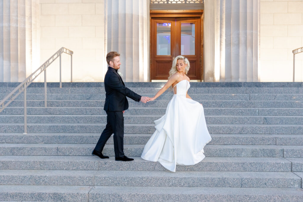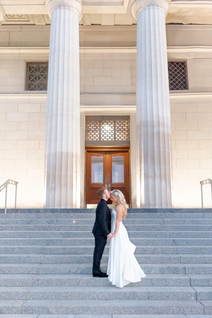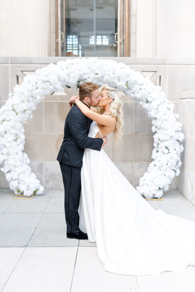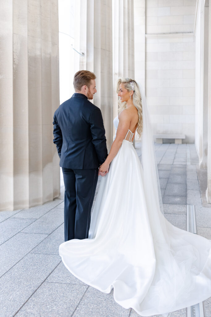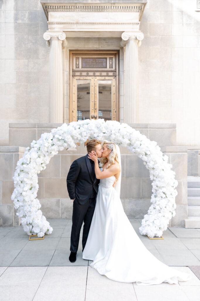 Beyond the courtyard, the Cincinnati Art Museum offers so many striking backdrops for portraits. The front steps and grand exterior create editorial, timeless images, while the greenery and artful stonework add a sense of romance. Everywhere you turn, the architecture and light create backdrops that make your love story feel like art in itself- all within steps of the ceremony and reception spaces.