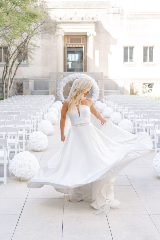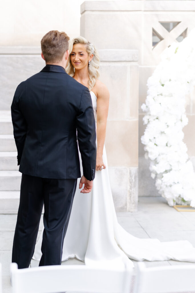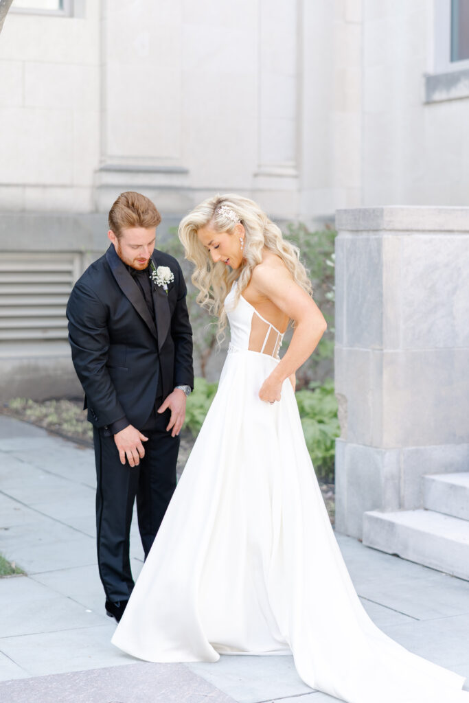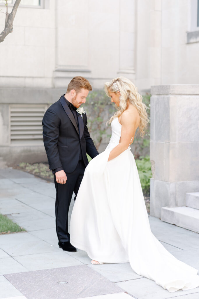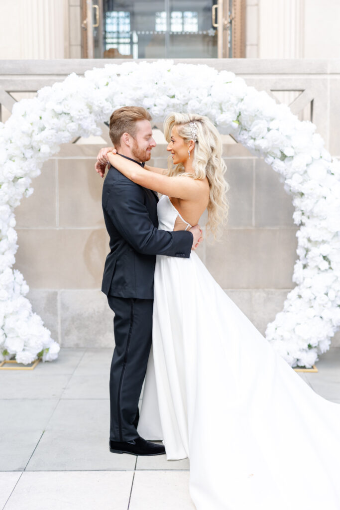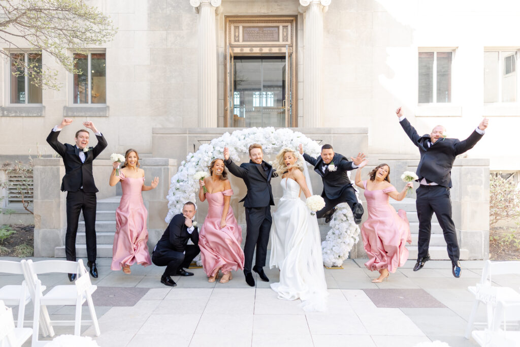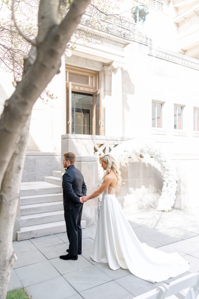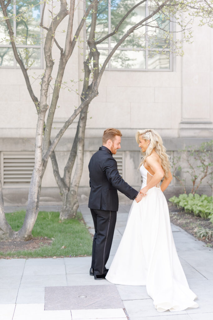 Beyond the courtyard, the Cincinnati Art Museum offers so many striking backdrops for portraits. The front steps and grand exterior create editorial, timeless images, while the greenery and artful stonework add a sense of romance. Everywhere you turn, the architecture and light create backdrops that make your love story feel like art in itself- all within steps of the ceremony and reception spaces.