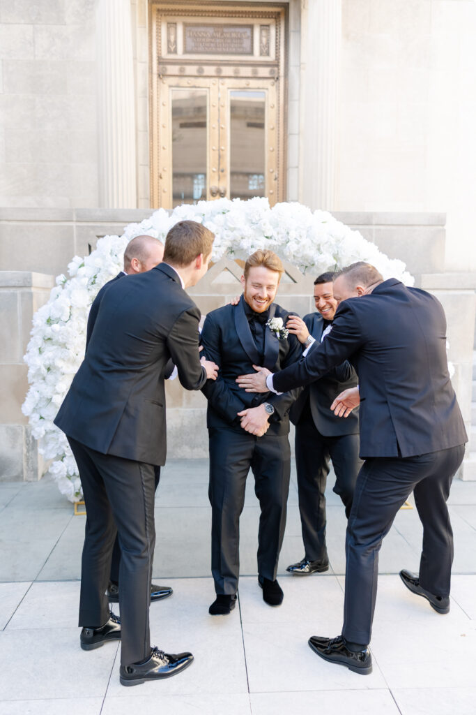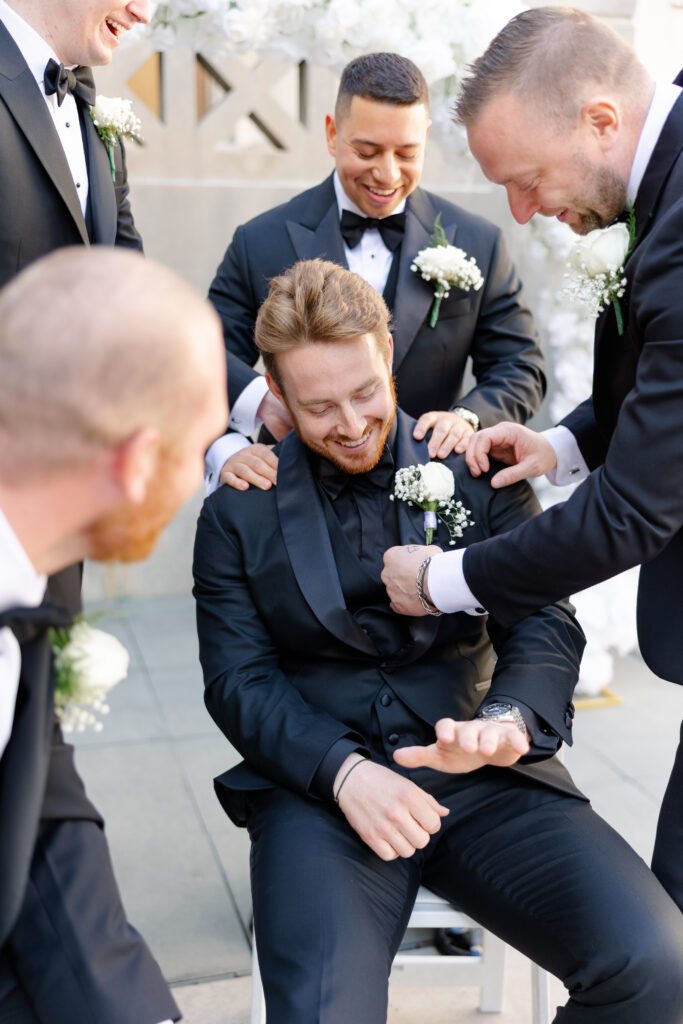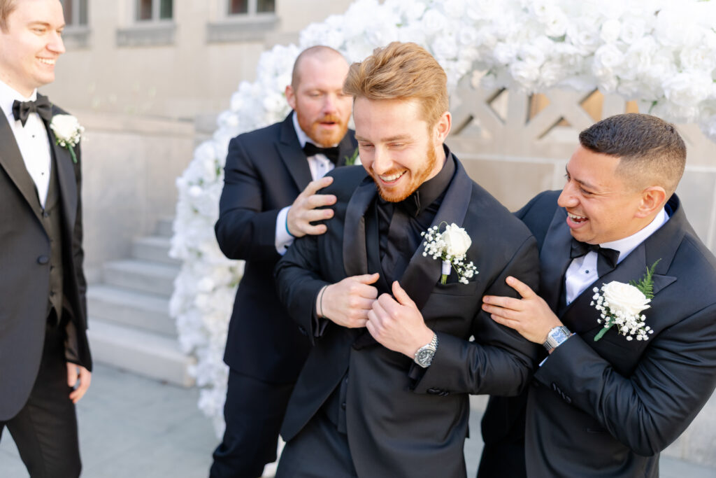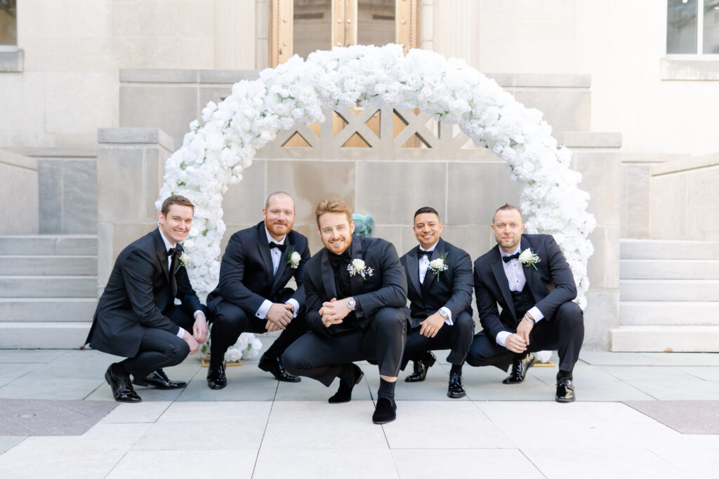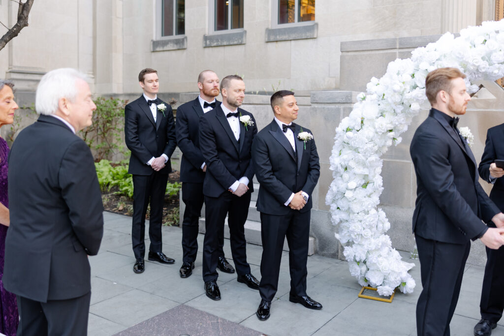 When it comes to the wedding party, the courtyard is a perfect gathering place. Its clean lines, open space, and glowing light make it effortless to arrange groups while still looking polished and natural. The backdrop is simple yet elegant, keeping the focus on the joy and energy of your favorite people.