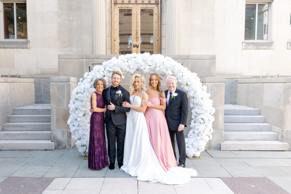 One of the hidden gems of the courtyard is how easy it makes family photos. The space is wide, uncluttered, and easy to access, which means portraits flow smoothly and everyone looks their best. Guests can relax and enjoy the moment, while we create portraits that feel classic and polished.
