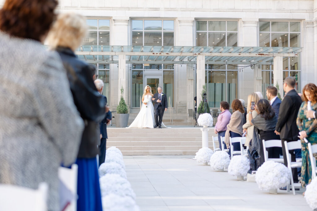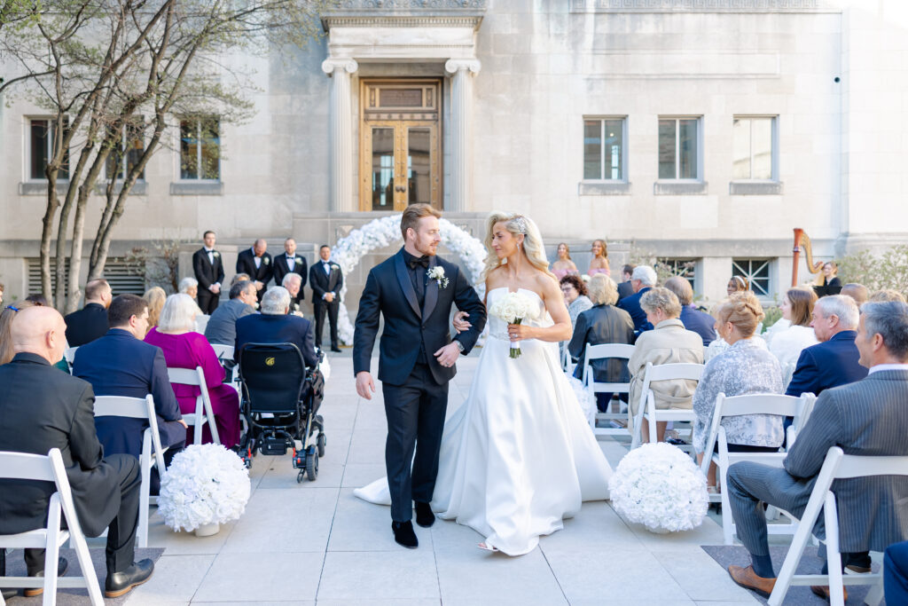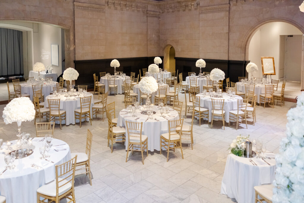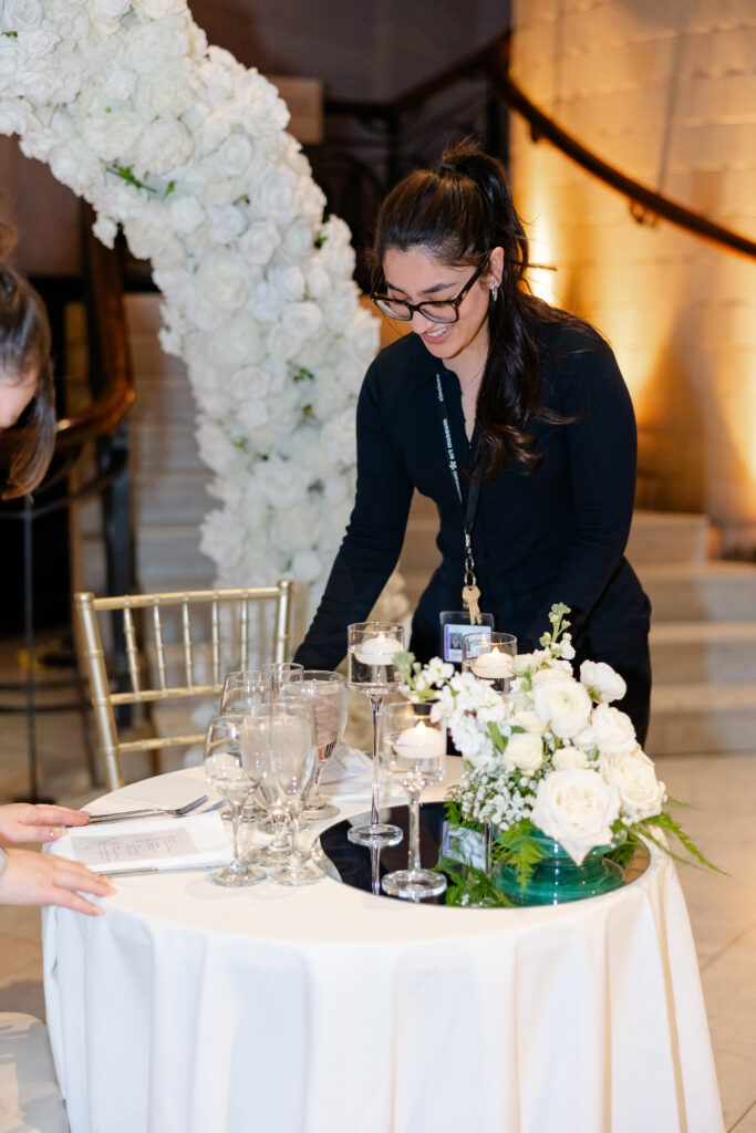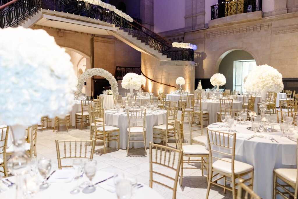 After the ceremony, guests step into the museum’s grand halls for cocktail hour. Mingling while surrounded by priceless art is an experience unlike any other. It’s a natural conversation starter, and it keeps the energy elevated while the courtyard is seamlessly transformed for the reception.