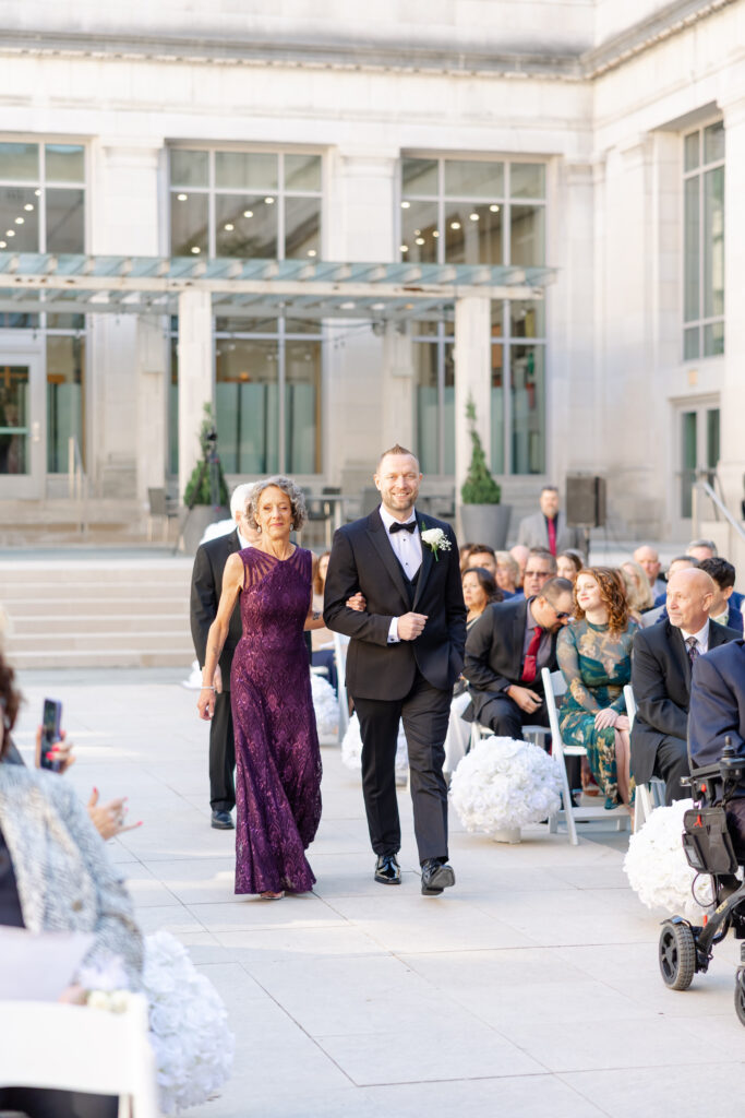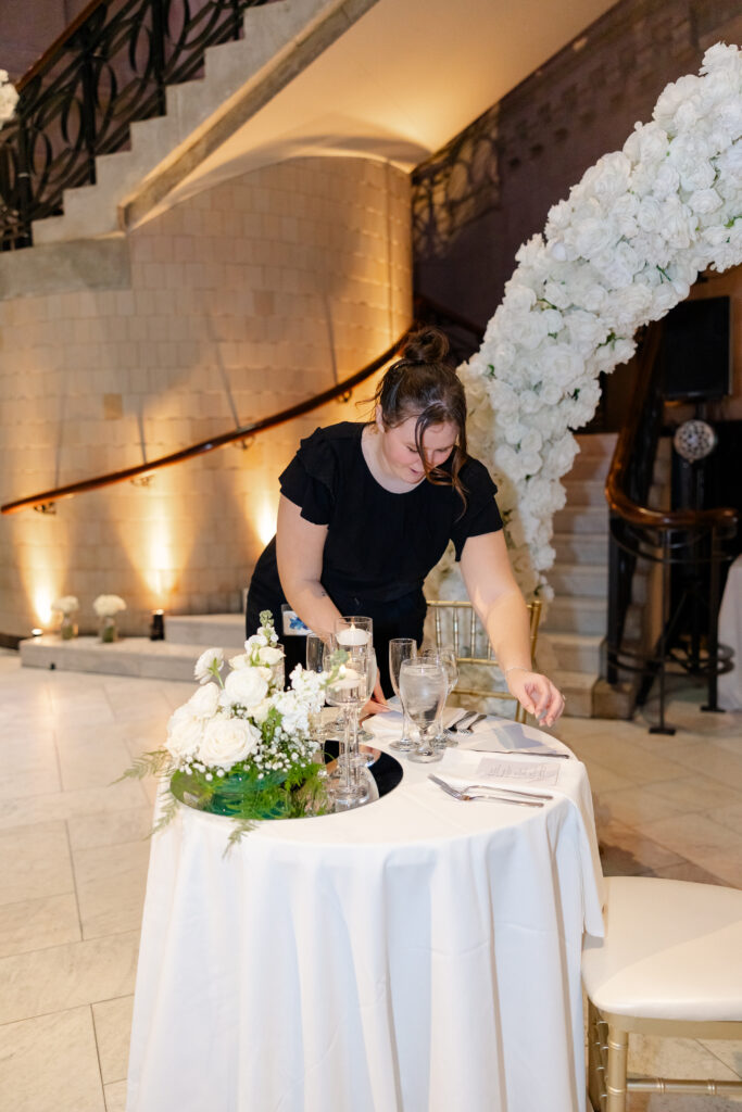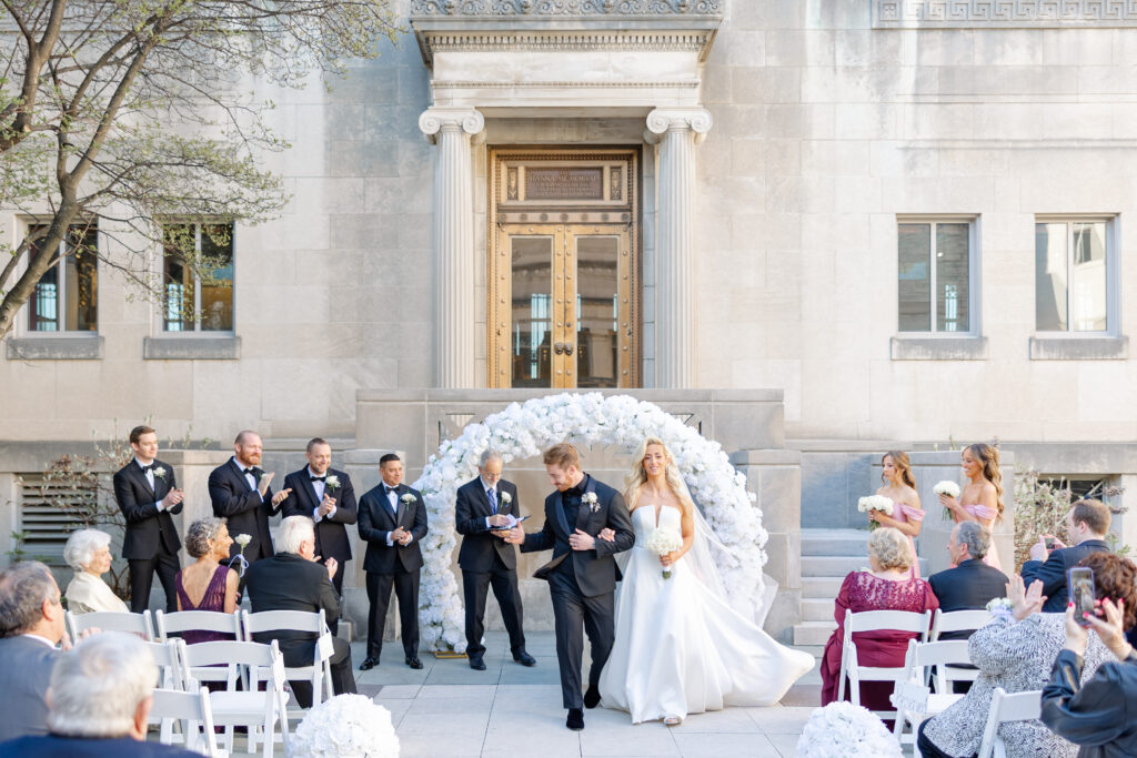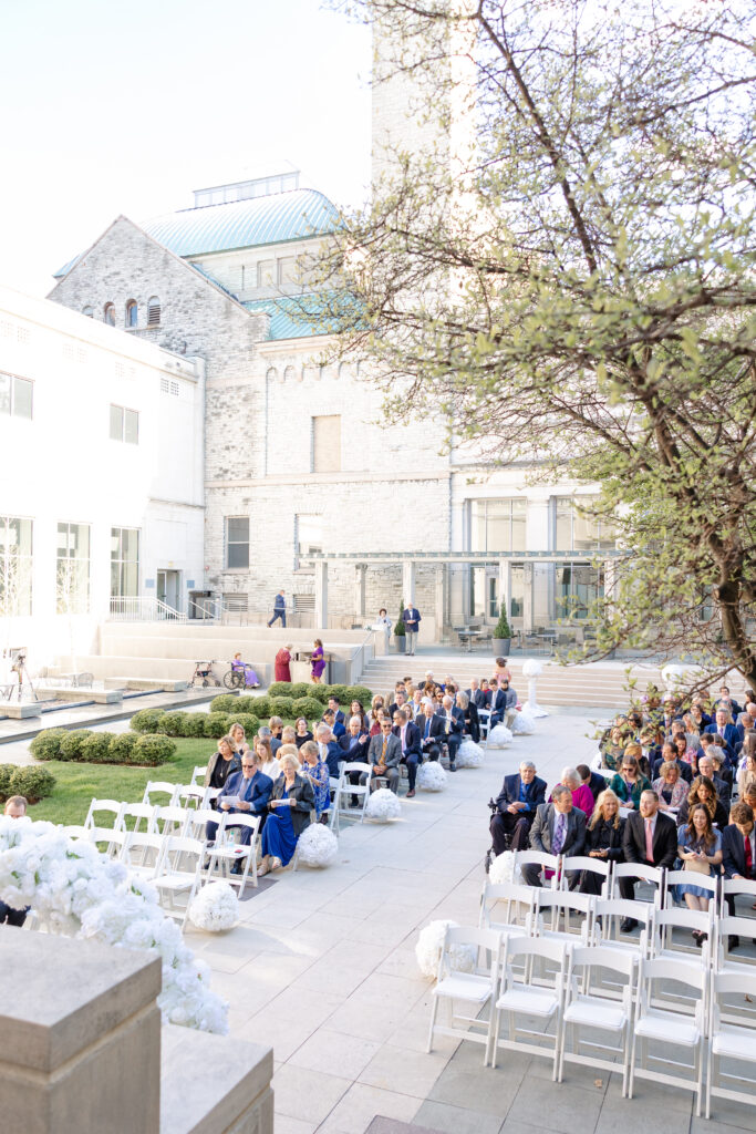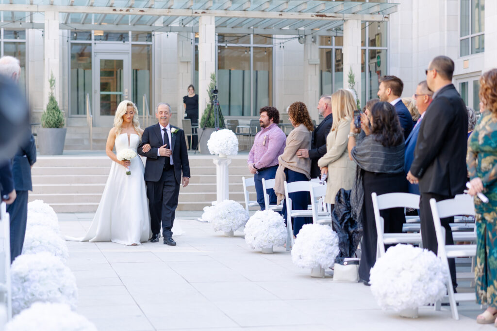 After the ceremony, guests step into the museum’s grand halls for cocktail hour. Mingling while surrounded by priceless art is an experience unlike any other. It’s a natural conversation starter, and it keeps the energy elevated while the courtyard is seamlessly transformed for the reception.