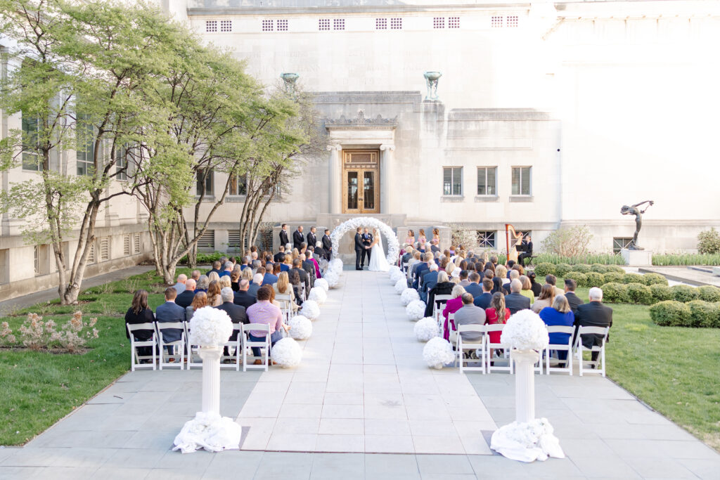 Few spaces feel as magical for a ceremony as the courtyard at the Cincinnati Art Museum. Surrounded by art and architecture, vows take on a sense of timelessness. A harpist in the corner or a string quartet fills the air with romance, and guests get to experience the beauty of the museum while celebrating your love.