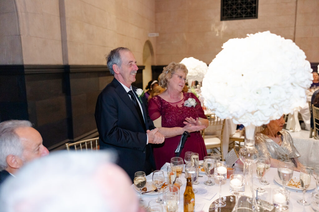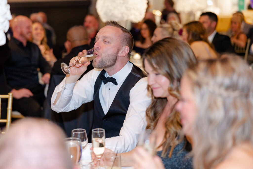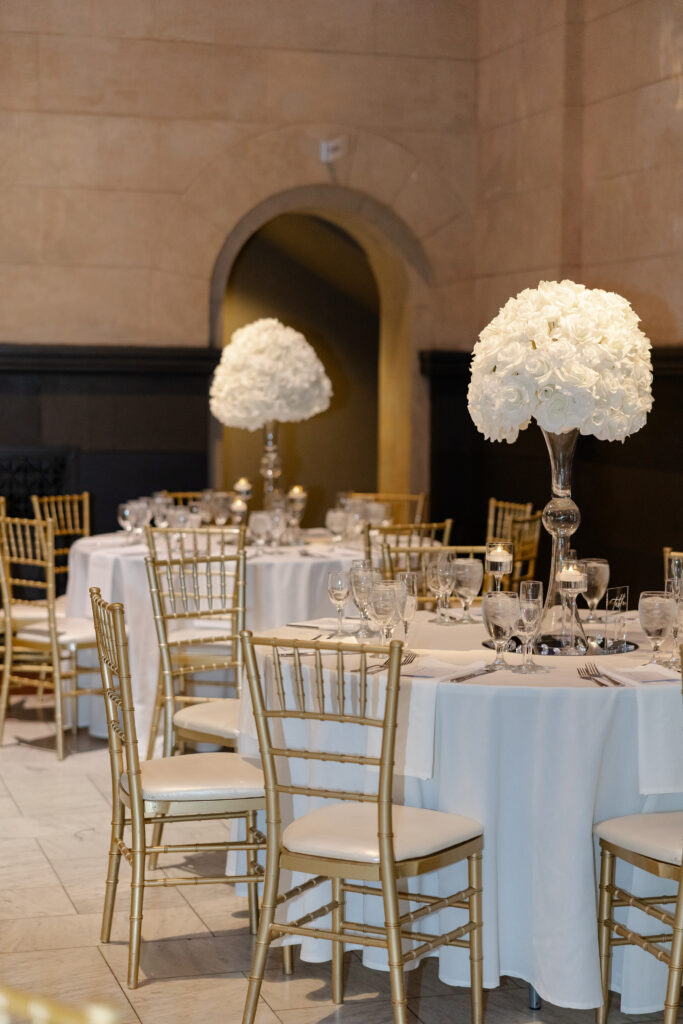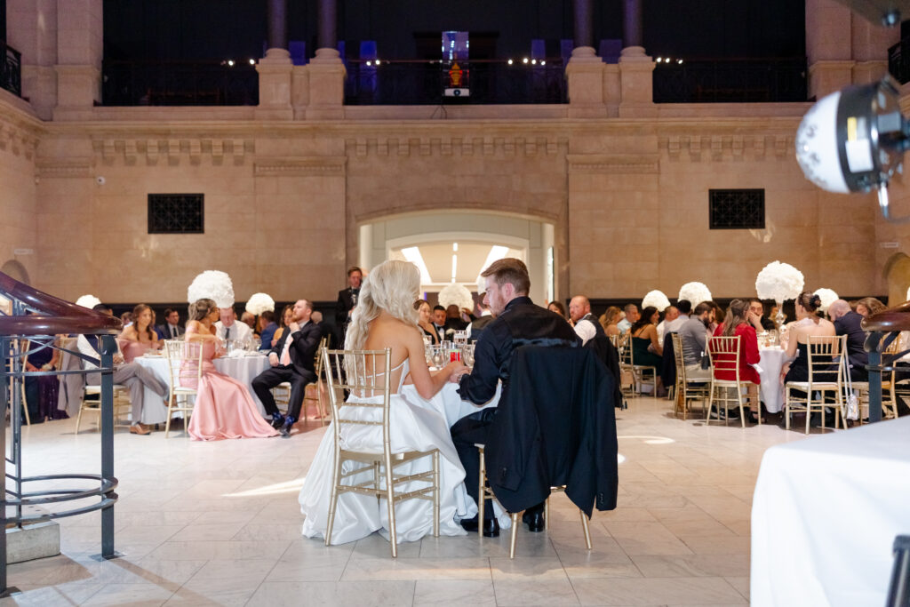 From there, the celebration continues seamlessly with dinner, toasts, and first dances. The ballroom’s architecture and elegant light frame each moment beautifully – whether it’s a heartfelt speech, a tearful parent dance, or laughter shared across the room. Every detail feels elevated, timeless, and filled with joy.