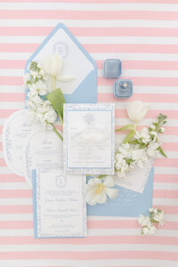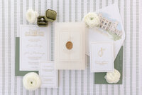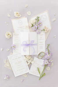 I style each suite intentionally, applying principles of flat lay photography: negative space, color harmony, composition, and leading lines. Every prop and floral accent has a purpose, guiding the eye to your suite and highlighting your design without distraction.